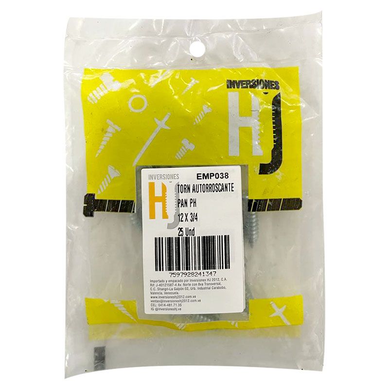 Tornillo autorroscante cabeza pan phillips 12 x ¾" (25 unds)